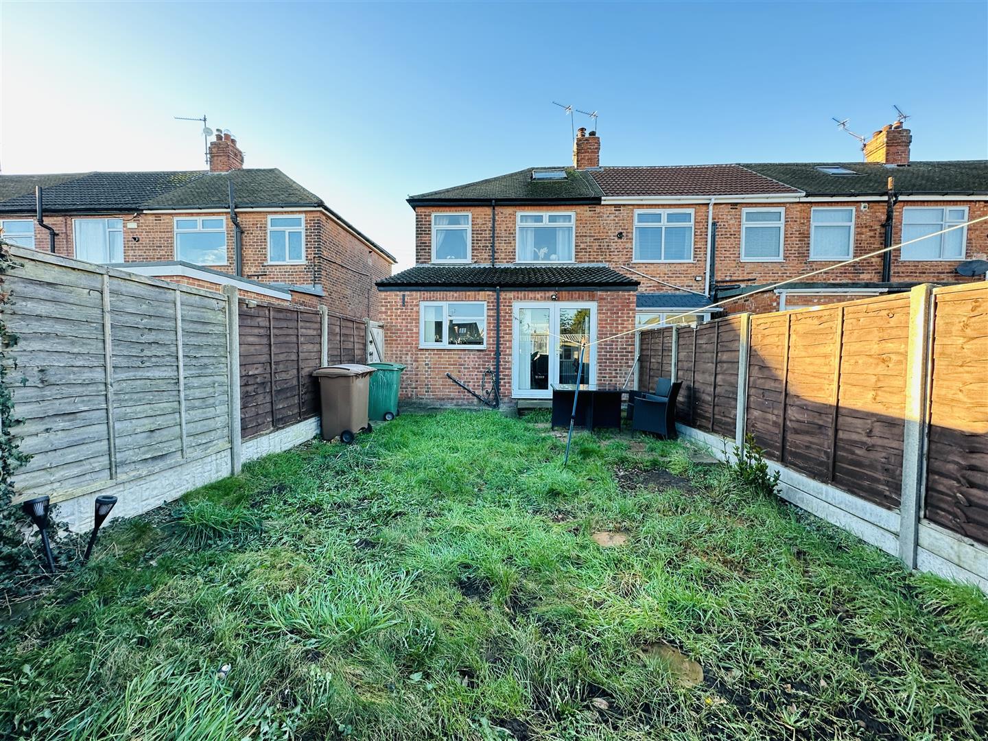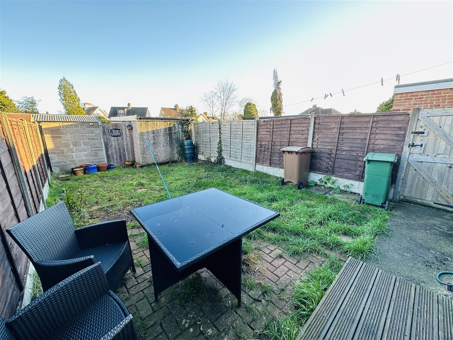 The rear is fully enclosed andis ainlylaide to lawn with side and rear pedestrain access gates. The detached garage is down the side of the property to the rear.