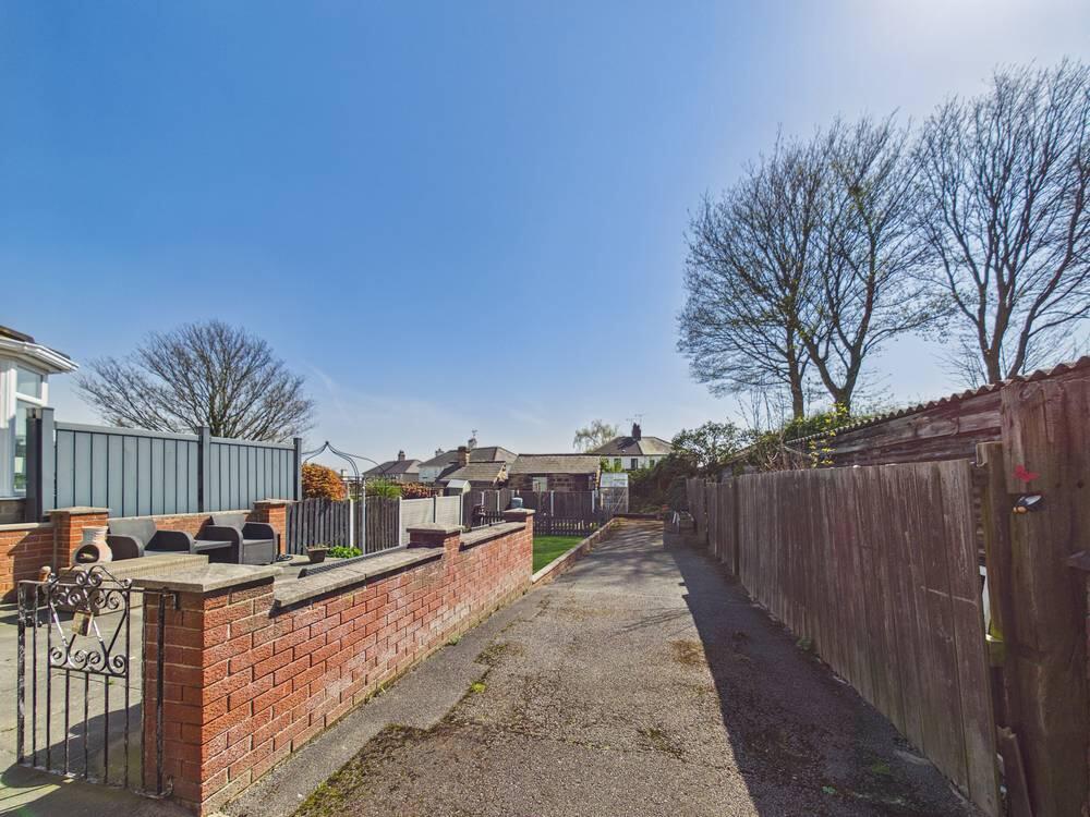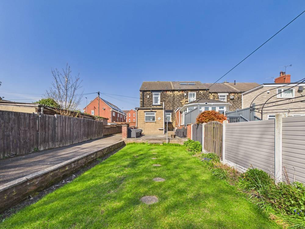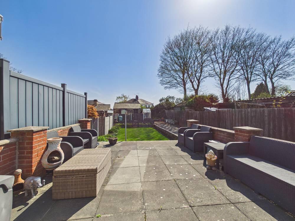 Large rear garden, partially paved and mainly laid to lawn. Access to two out buildings. Driveway running down the side of the property with parking for over three cars.