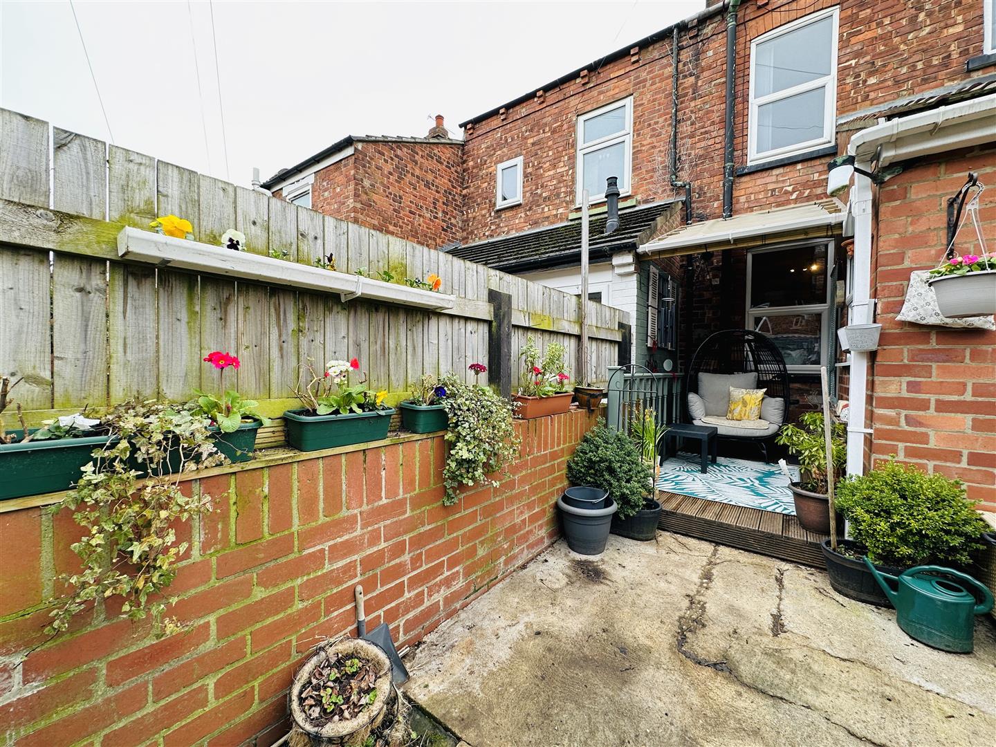 To the rear is an enclosed low maintenance garden with outbuilding and decked seating area.