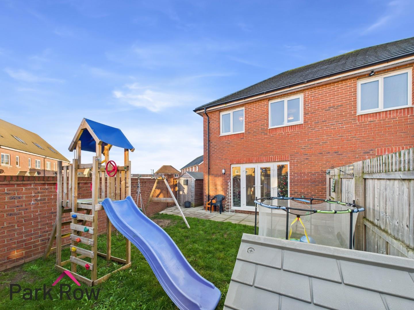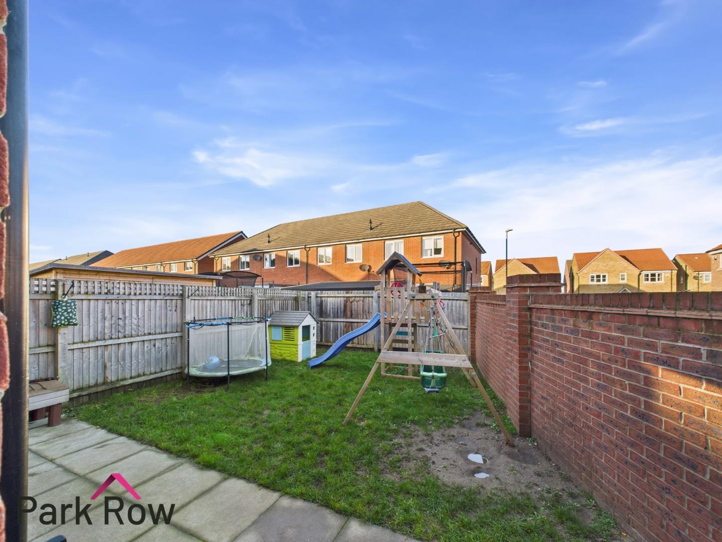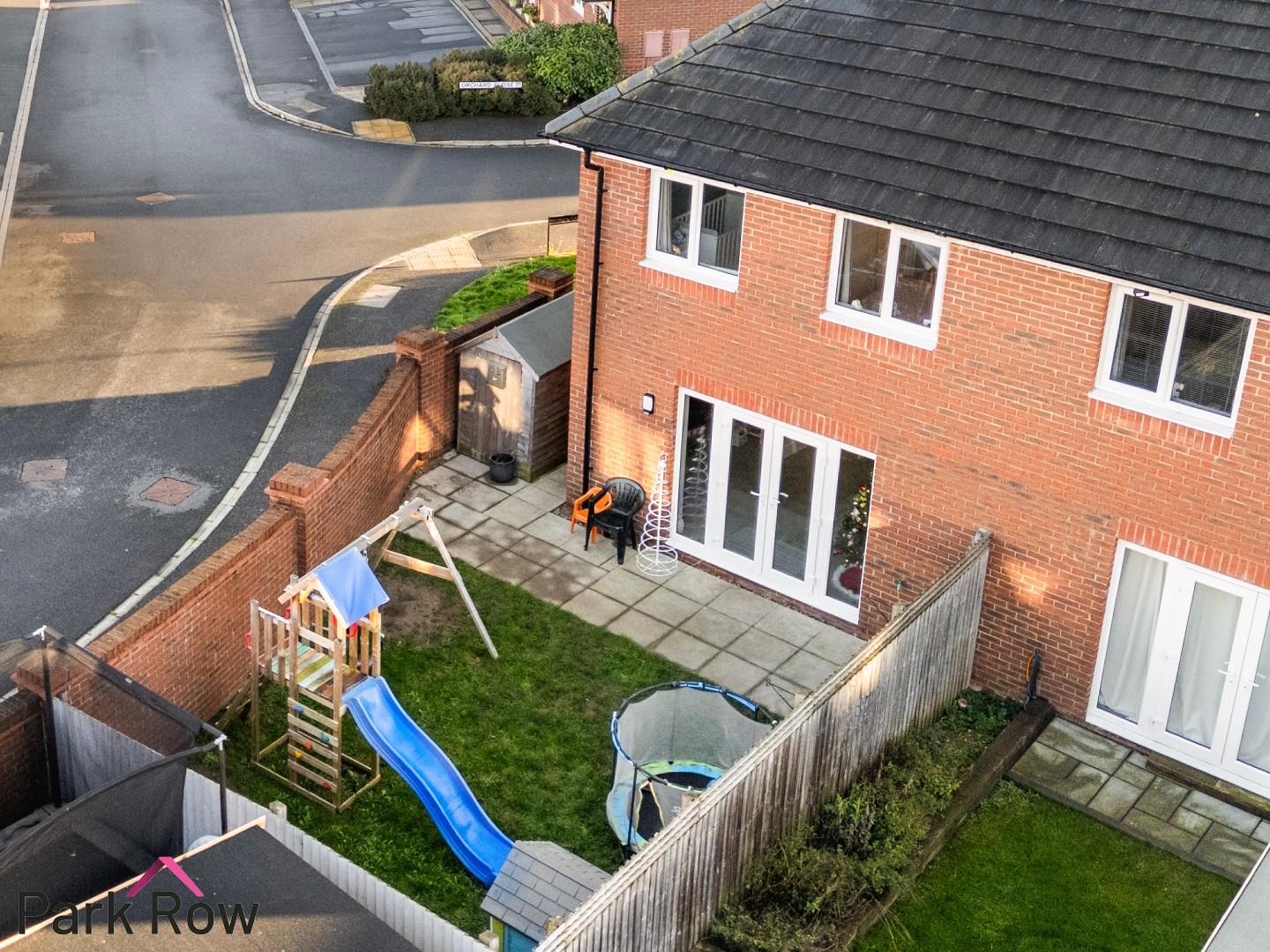 Accessed via the gate at the side of the property or through the double doors in the lounge where you will step out onto; a paved area with space for outdoor seating which runs down the side of the property creating space for an outdoor shed, perimeter wooden fencing to the rear and left hand side elevation, a brick built wall to the right hand side elevation and the rest is mainly lawn.