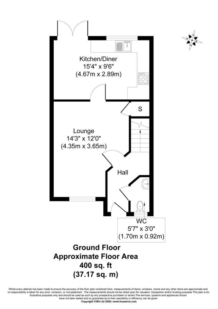 Ground Floor w.c. 1.70m x 0.92m (5'6" x 3'0")