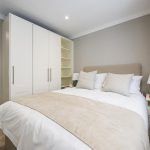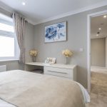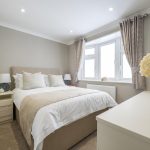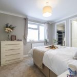 Bedroom 2 is another well-proportioned bedroom with a double bed, bedside cabinets, and a window with natural light. The room is carpeted and decorated in neutral shades, offering a calm and restful environment. It is an adaptable space suitable for guests, family, or use as a second bedroom.