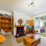 The living room offers a bright and welcoming environment with a large window and a tasteful mix of neutral tones and warm accents. It features a traditional log burner with a wooden mantle. The room opens into the snug, creating a fluid space perfect for relaxation and family time which sits to the rear of the property over looking the garden.