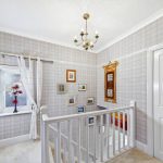 The landing is a bright and welcoming space with a window allowing natural light to filter through. It features neutral wallpaper with a subtle pattern, white woodwork including the banister, and provides access to the bedrooms and bathroom upstairs.