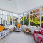 This snug provides a cosy, bright space with large windows wrapping around, offering pleasant views of the garden. The neutral decor, while the vertical blinds provide privacy without compromising the natural light.